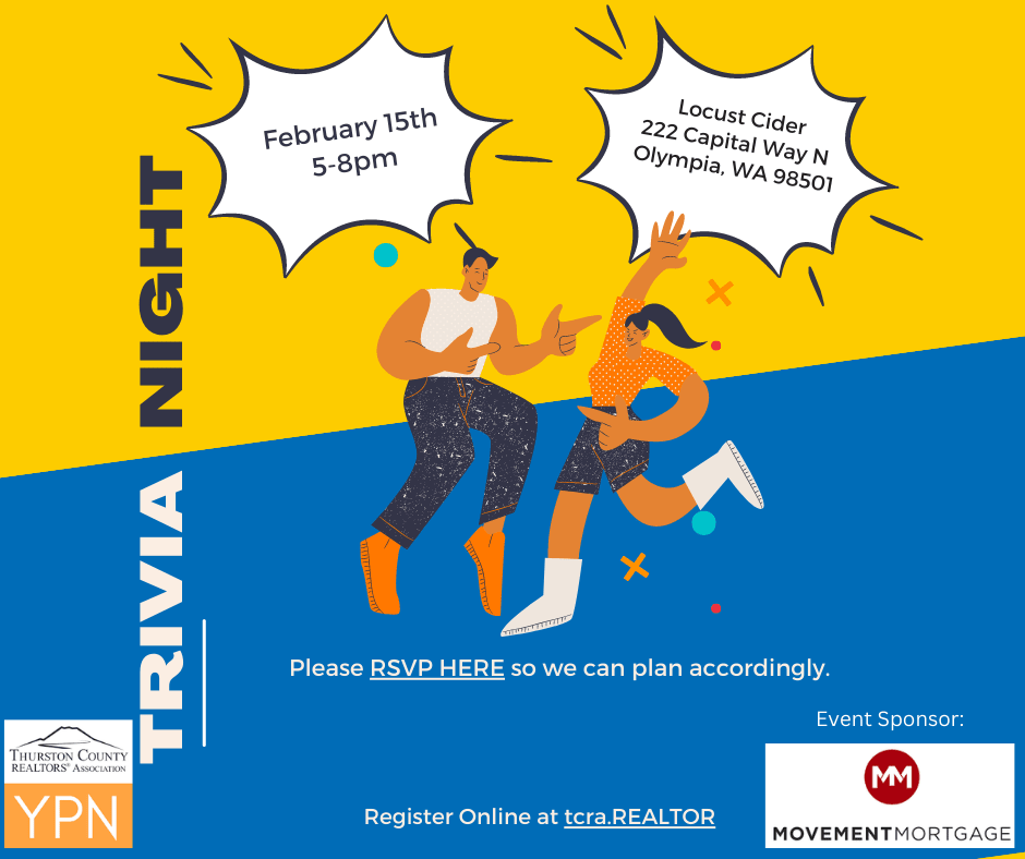 Please RSVP to join us for YPN Trivia Night/Social at Locust Cider on Wednesday, February 15th from 5-8pm. Trivia is scheduled to start at 5:30pm. Event sponsored by Movement Mortgage!